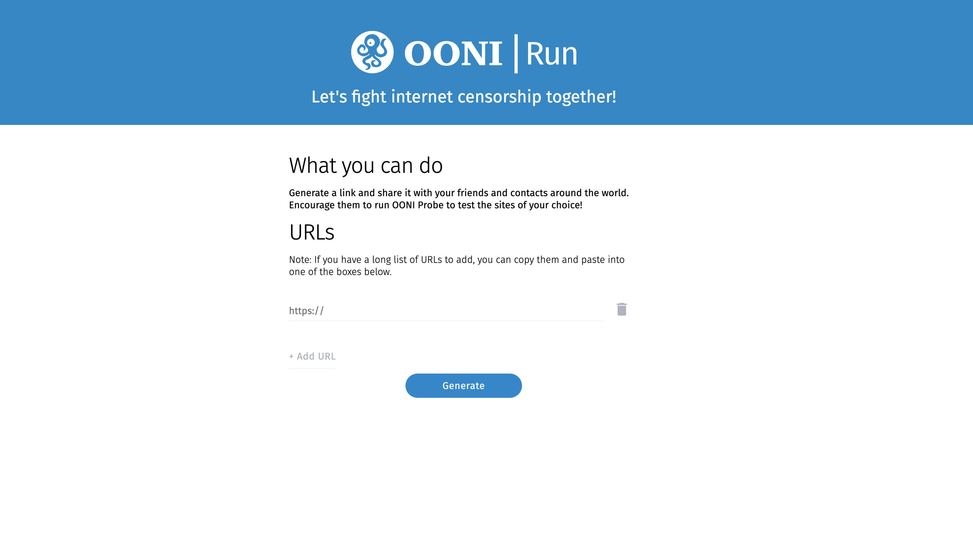 အကယ်၍ သင်သည် (ကမ္ဘာတစ်ဝှမ်းရှိ OONI Probe အသုံးပြုသူများမှ စမ်းသပ်ထားသော မူရင်း ဝဘ်ဆိုက်များပါဝင်သော) Citizen Lab test lists ကို အထောက်အကူပြုလိုပါက ကျေးဇူးပြု၍ ကျွနုပ်တို့၏ သက်ဆိုင်ရာ documentation ကို ကိုကာပါ (သို့မဟုတ်) ကျွနုပ်တို့၏ Test Lists Editor. ကို အသုံးပြုပါ။