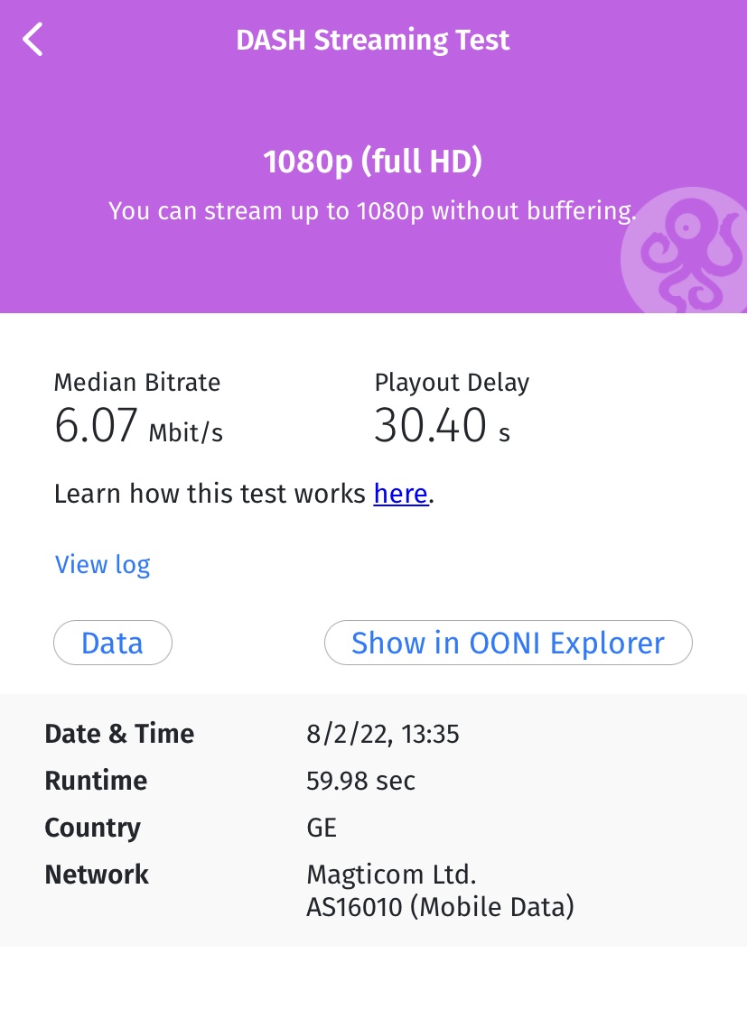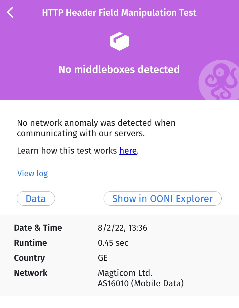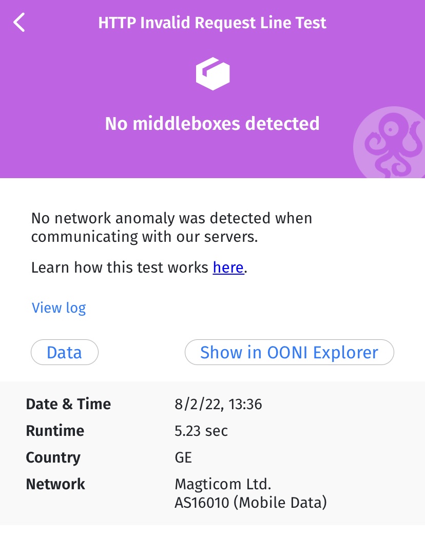 - OONI Probe စမ်းသပ်မှု အပေါ်တွင်မူတည်သည့် ကွန်ရက်တိုင်းတာမှု ဒေတာများ