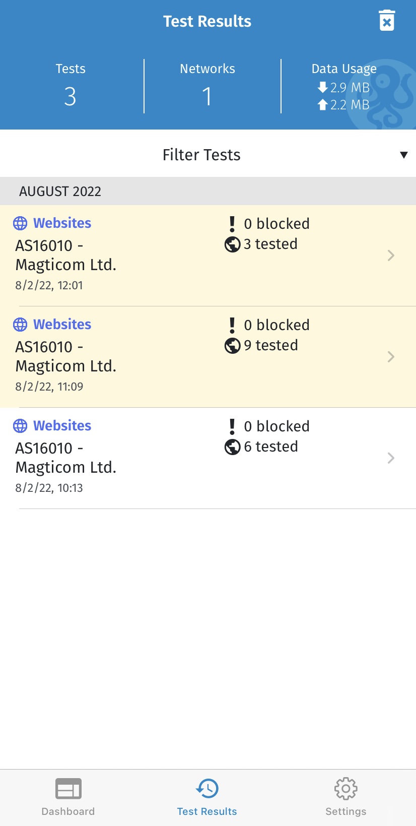 ) - (ဥပမာ- `Magticom Ltd. အတွက် AS16010) ကွန်ရက်အချက်အလက်များ ASN နှင့် စမ်းသပ်မှုတစ်ခုအား WiFi သို့မဟုတ် မိုဘိုင်းဒေတာကိုအသုံးပြု၍ လုပ်ဆောင်ခြင်း ရှိမရှိ