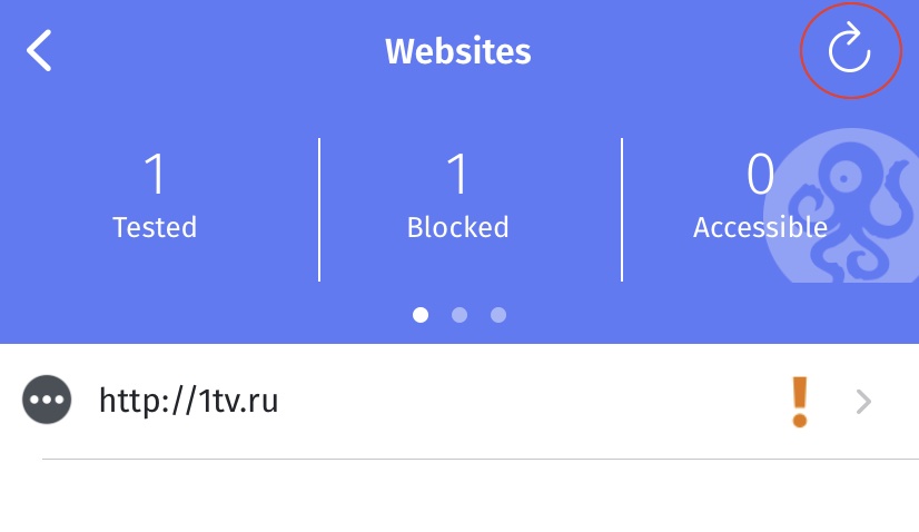 အဆင့်(၁)။ သင့် OONI Probe mobile app ၏ Dashboard ရှိ ဝဘ်ဆိုက်များ ကို နှိပ်ပါ။
