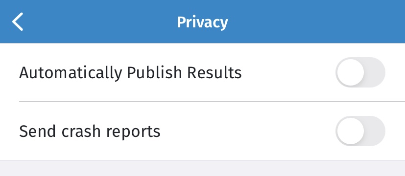 နဂိုမူလအားဖြင့် သင့် OONI Probe စမ်းသပ်မှုရလဒ်များ၏ အလိုအလျောက်ထုတ်ဝေခြင်းကို ဖွင့်ထားသော်လည်း (စတင်လုပ်ဆောင်နေစဉ်အတွင်း သင်မပါဝင်ပါက) ပျက်စီးမှုအစီရင်ခံစာများ တင်သွင်းခြင်းကို ပိတ်ထားသည် ။