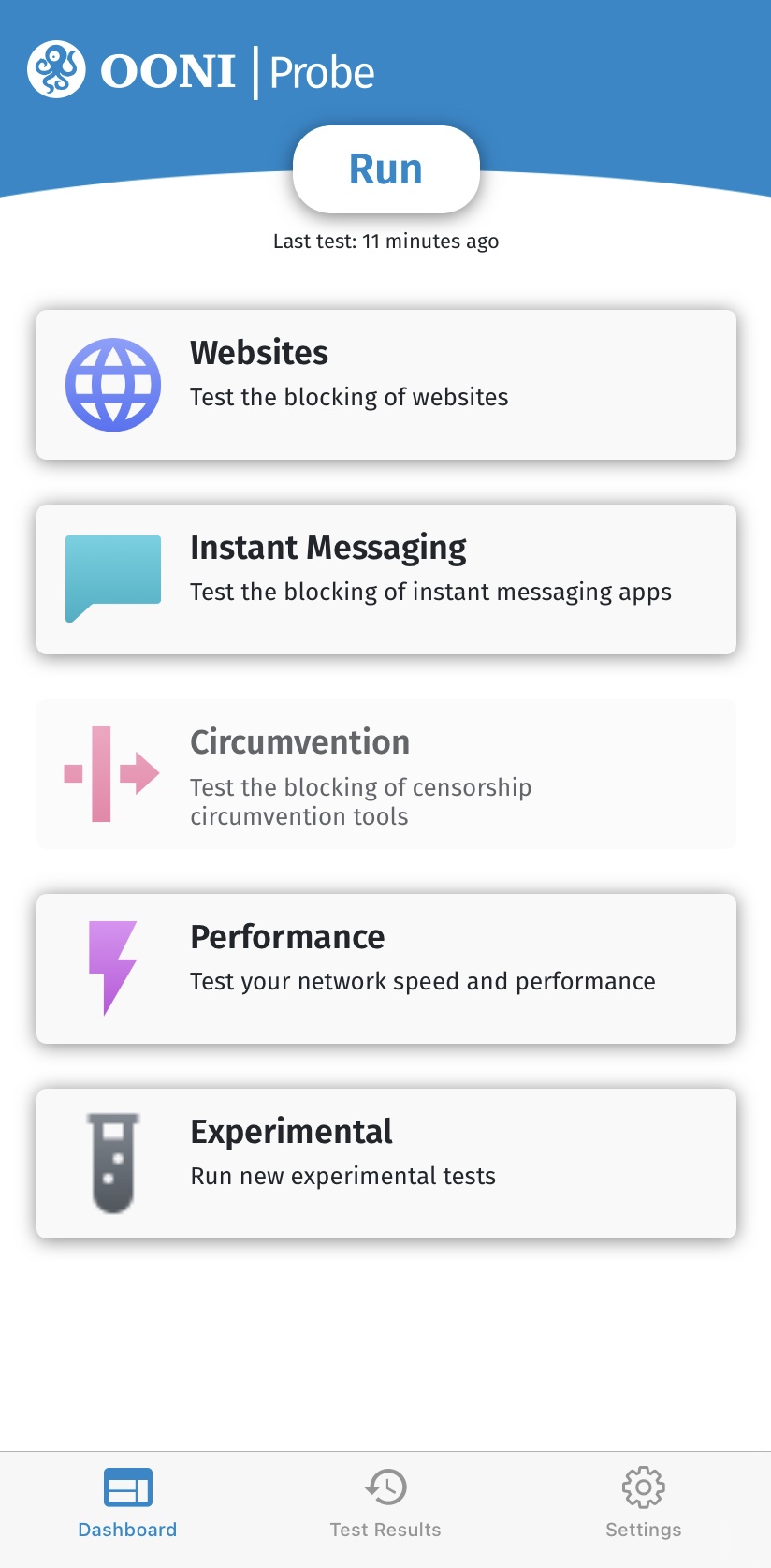 OONI Probe နှင့်ပတ်သက်သည့် သင့် အသုံးပြုမှုကို ဆက်တင်များမှတစ်ဆင့် သင့် စိတ်ကြိုက်ပြင်ဆင်နိုင်ပါသည်။