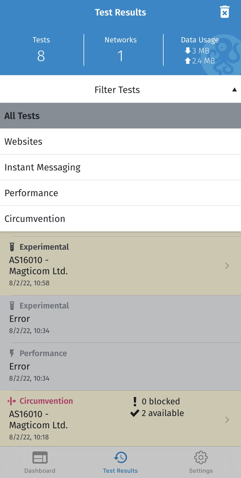 OONI Probe Mobile ကို အသုံးပြုခြင်း။