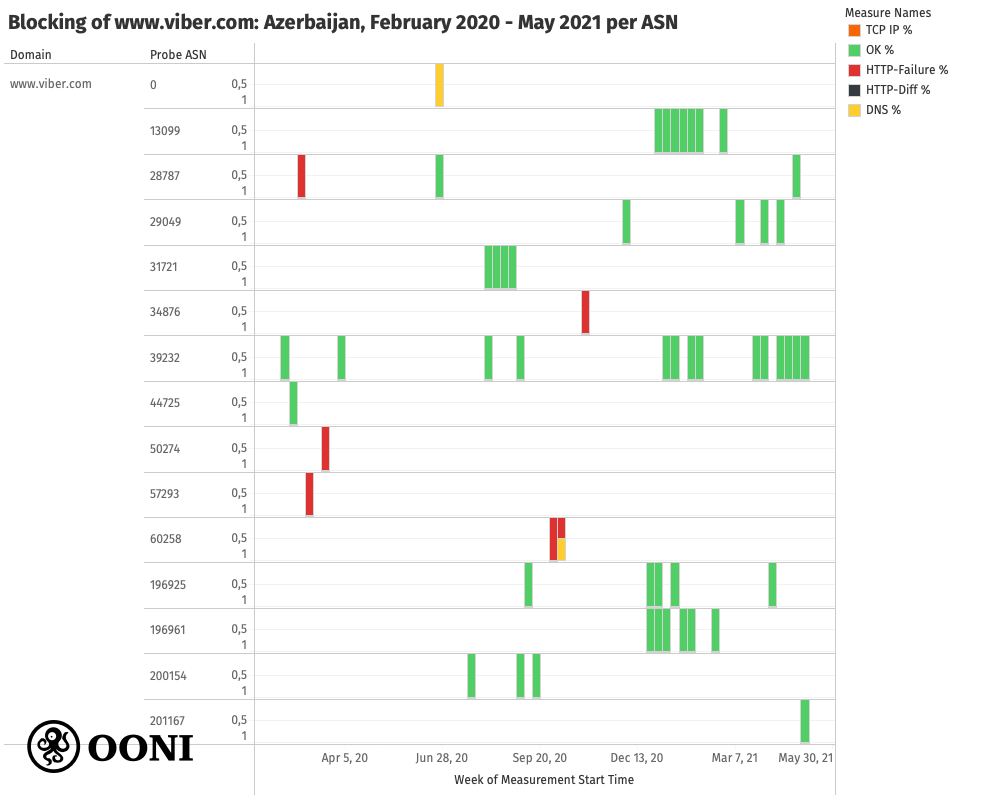 across AS networks in Azerbaijan between February 2020 to May 2021 based on OONI data, https://explorer.ooni.org/search?since=2021-05-11&domain=www.viber.com&probe_cc=AZ