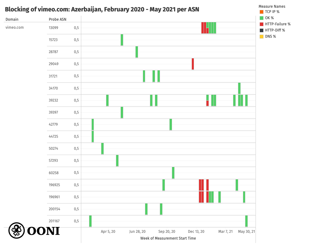 across AS networks in Azerbaijan between February 2020 to May 2021 based on OONI data, https://explorer.ooni.org/search?since=2021-05-11&domain=vimeo.com&probe_cc=AZ