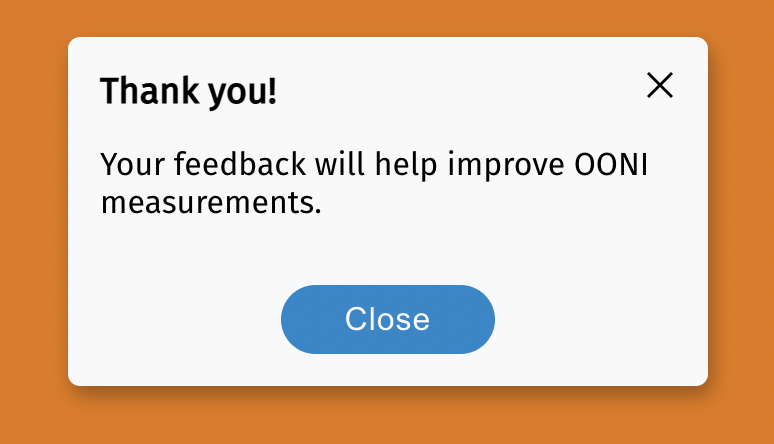 Your measurement feedback will enable us to improve our data analysis capabilities and the quality of OONI measurements. We thank you for your feedback!