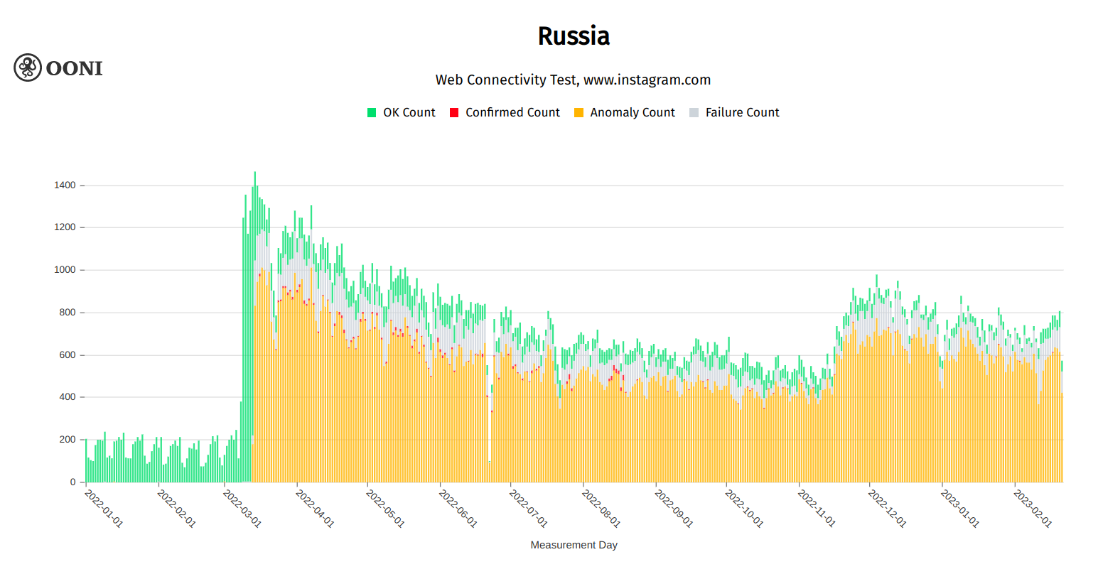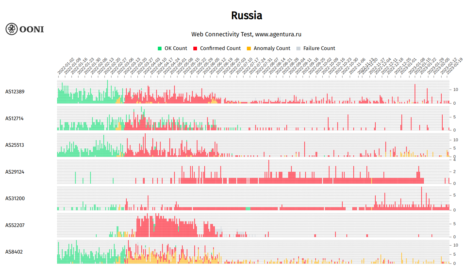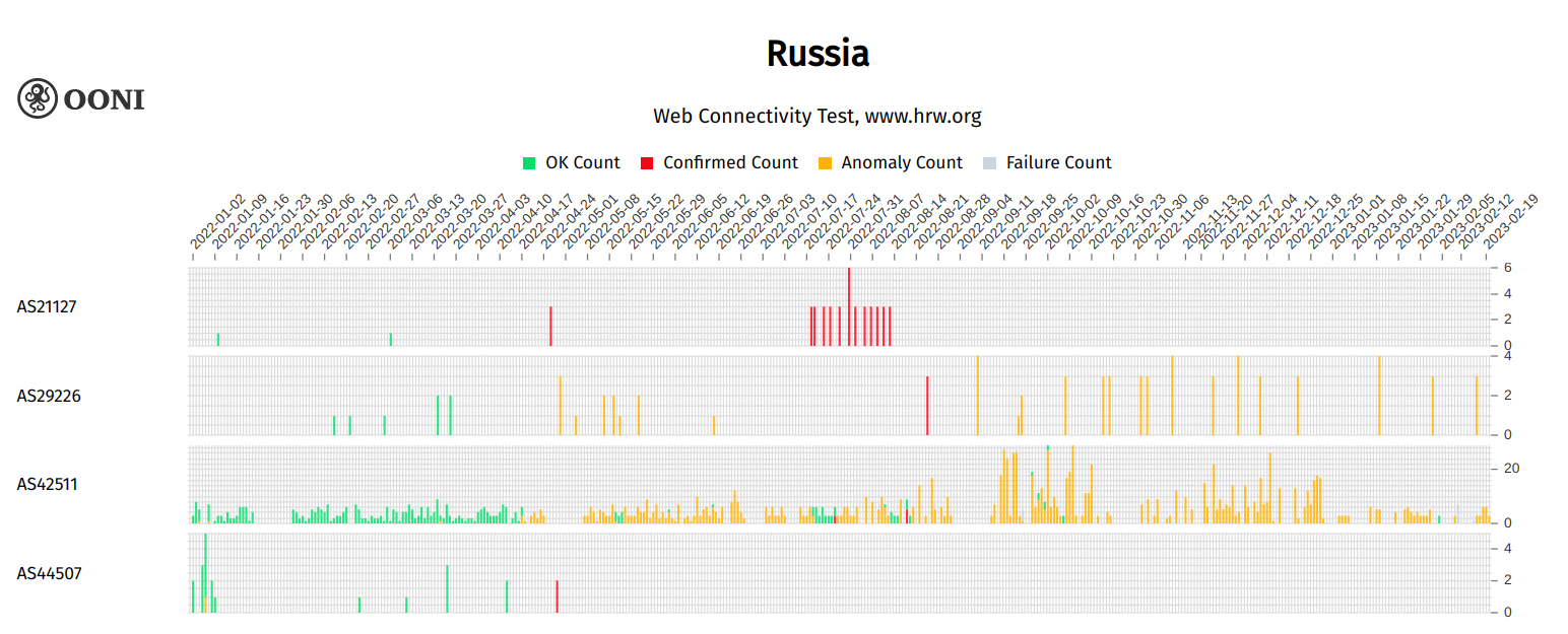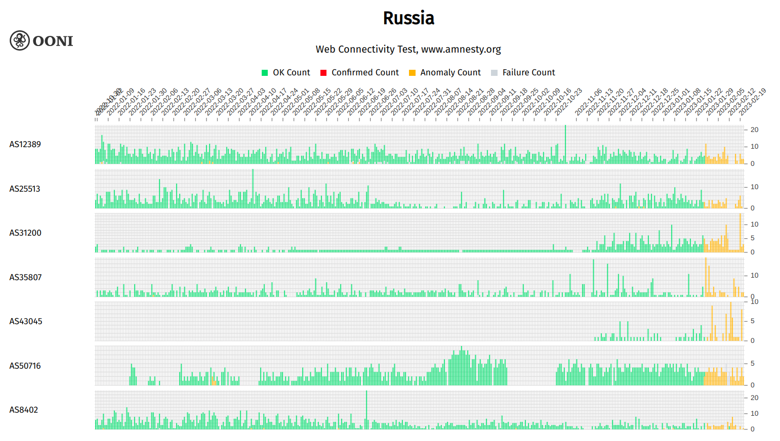 on 325 ASNs in Russia between 1st January 2022 to 20th February 2023 (source: OONI data).