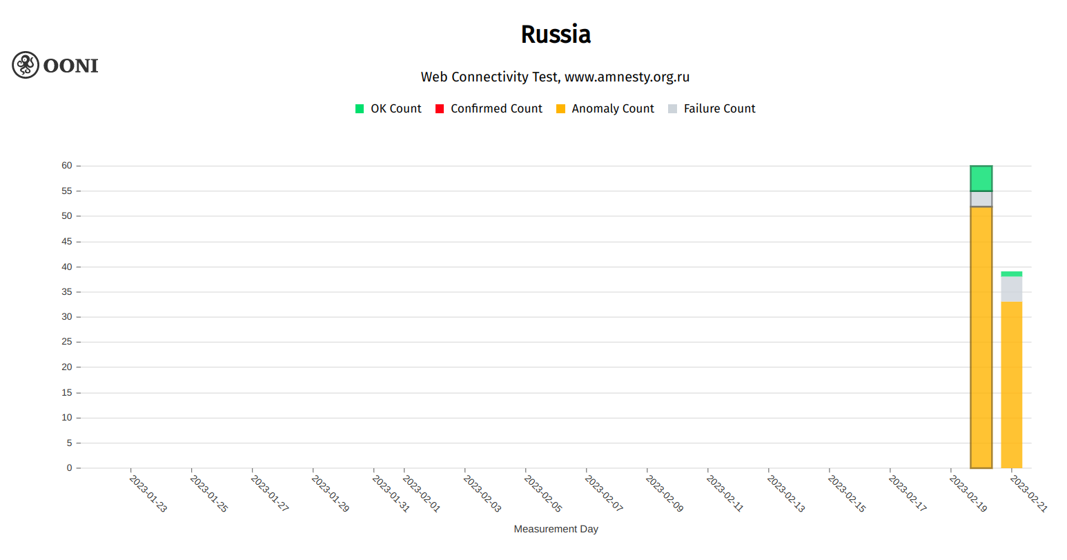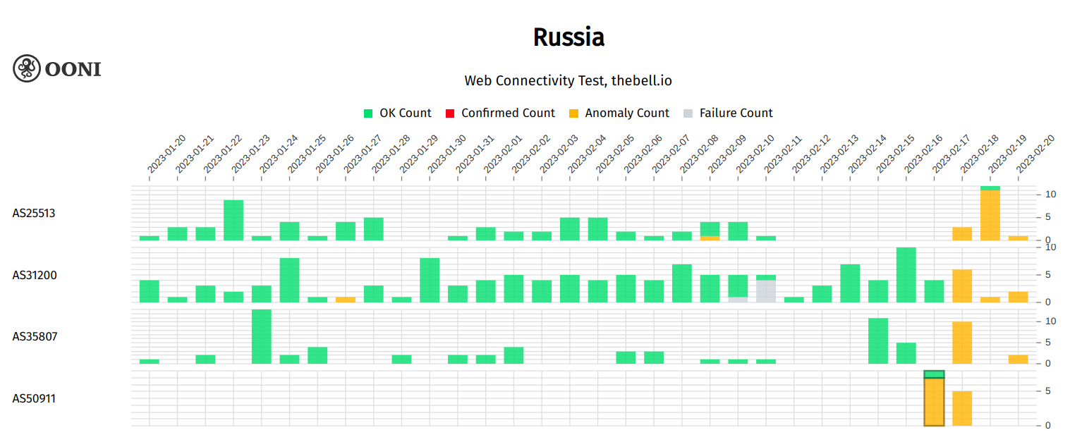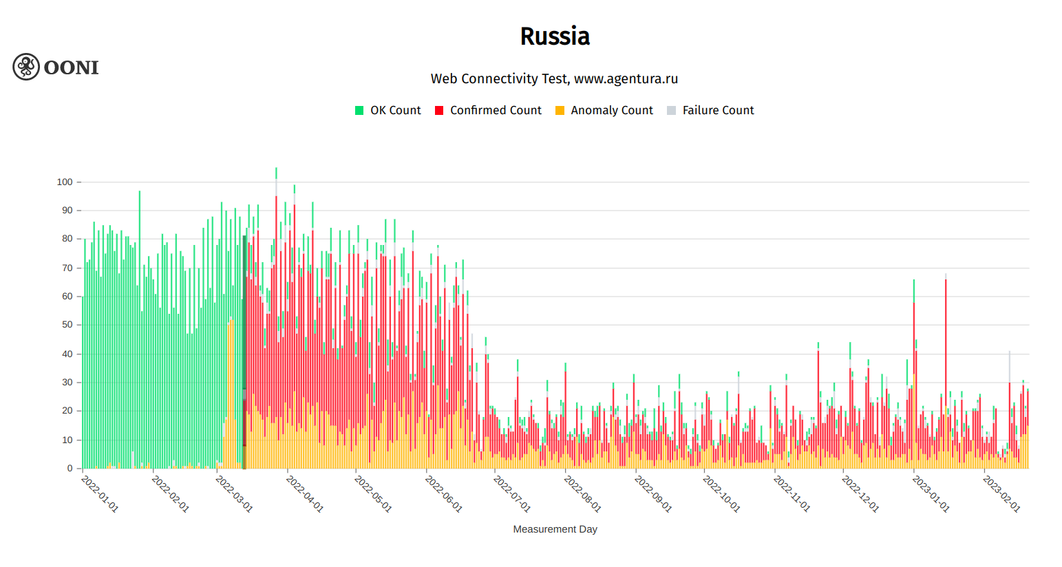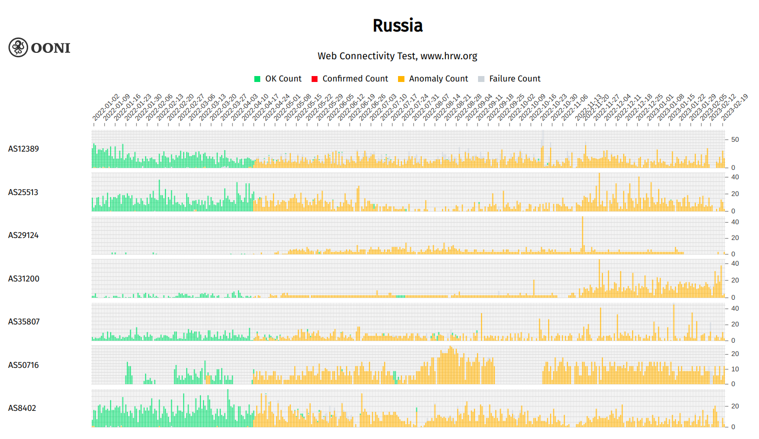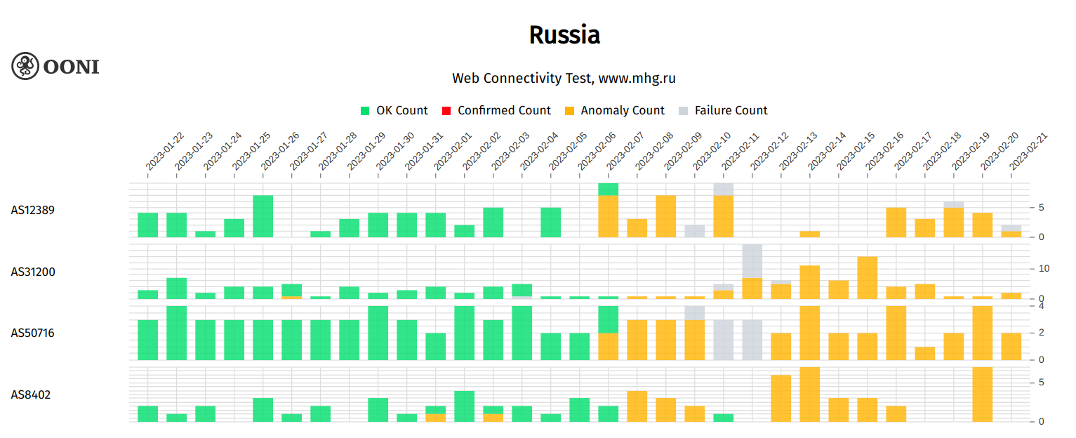 on 325 ASNs in Russia between 1st January 2022 to 20th February 2023 (source: OONI data).
