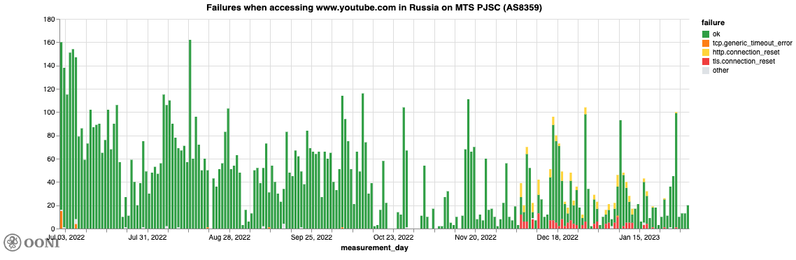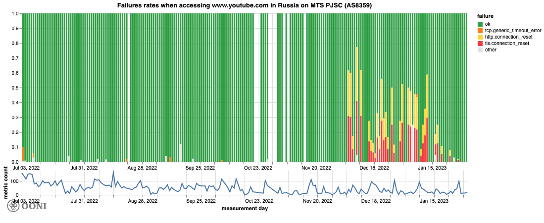 Starting from 5th December 2022, OONI data started to show signs of YouTube blocking on MTS (AS8359).