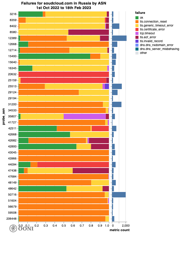 on 133 ASNs in Russia between 1st September 2022 to 18th February 2023. We can see that while soundcloud.com