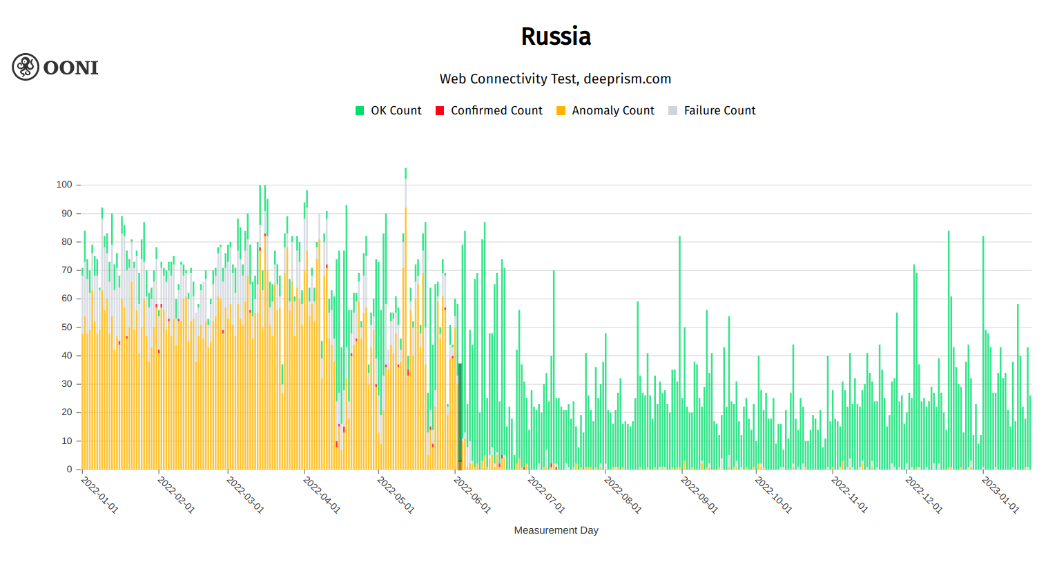 ) appears to have been unblocked in Russia, as suggested by OONI data.