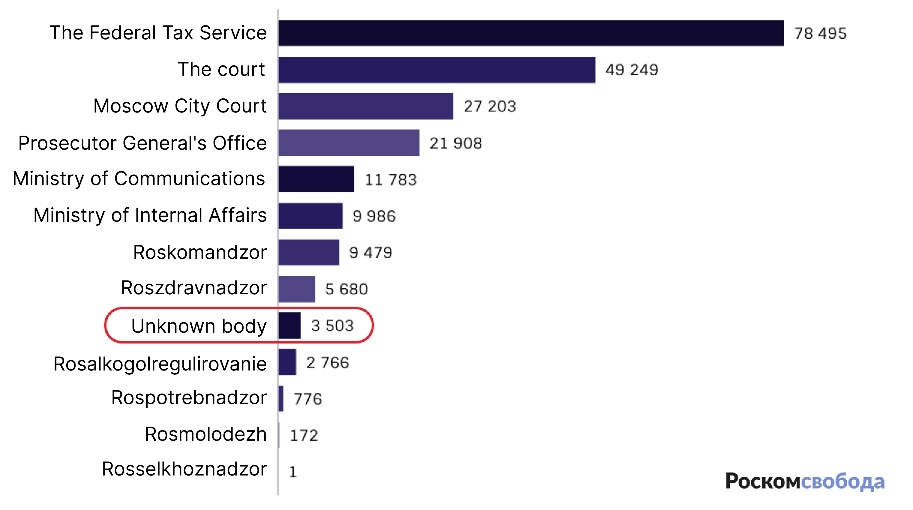 In November 2022, Roskomsvoboda mentioned that some of the entries in the registry became unattributed to the authority, meaning that there is no information about who requested the website to be blocked. At the same time, most resources which were added anonymously contain information that could allegedly discredit or contain fakes about the actions of the Russian army. This motivation for restricting access seems very similar to the approach of the Prosecutor General’s Office.