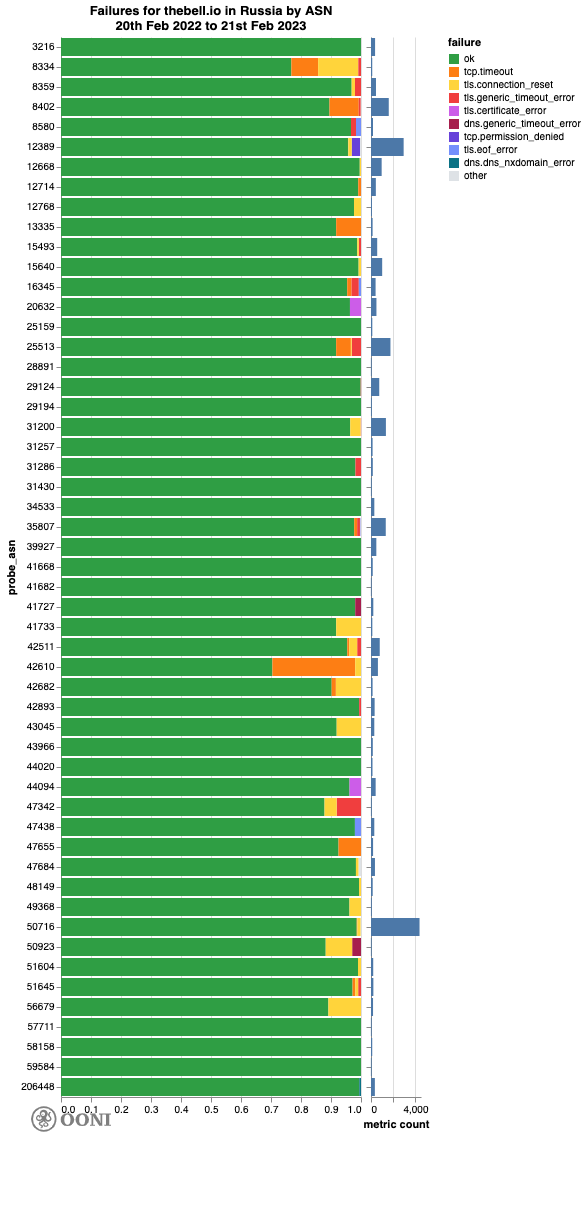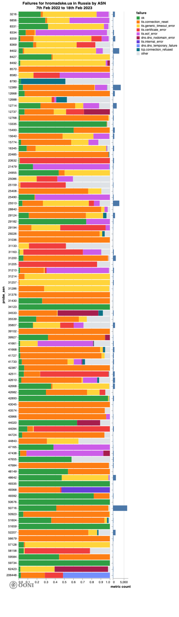 was tested on different ASNs in Russia (limited to ASNs that received at least 100 measurements) between 1st October 2022 to 18th February 2023 (source: OONI data).