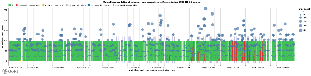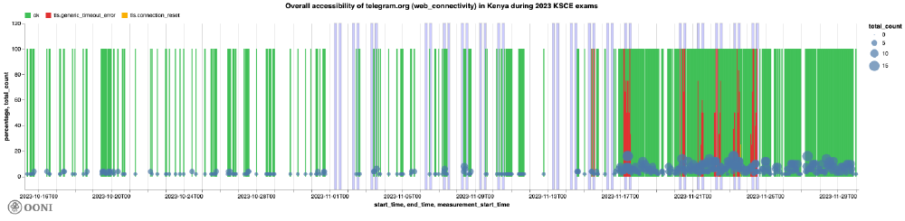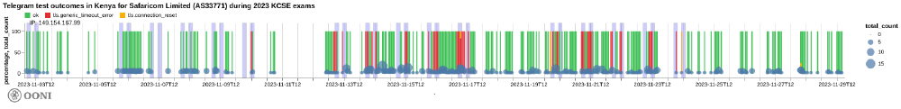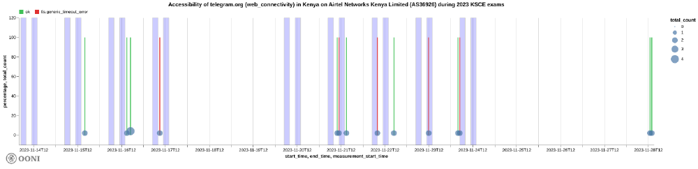 Unblocking of Telegram. OONI data shows that the blocking of Telegram was lifted by 25th November 2023, which correlates with the end of the 2023 KCSE exams.