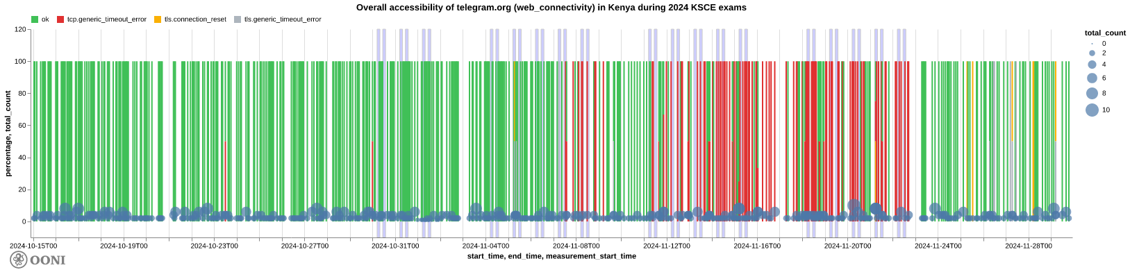 Access to Telegram was blocked in Kenya during the Kenya Certificate of Secondary Education (KCSE) national exams in both November 2023 and November 2024. This report provides an analysis by the Open Observatory of Network Interference (OONI) Foundation on these blocks.