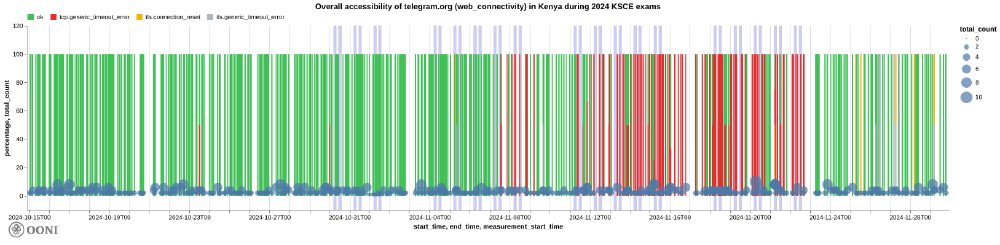 - Date range of analysis. The findings are limited to OONI network measurement data collected from Kenya in November 2023 and November 2024, when the blocking of Telegram was reported in the country during the KCSE exams.