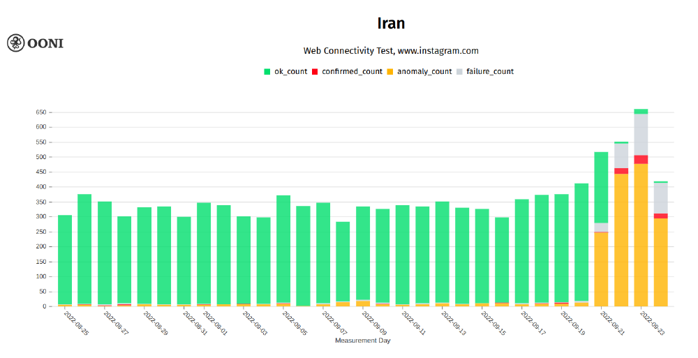 For example, the MAT shows that Iran started blocking Instagram on 21st September 2022, during the ongoing protests.