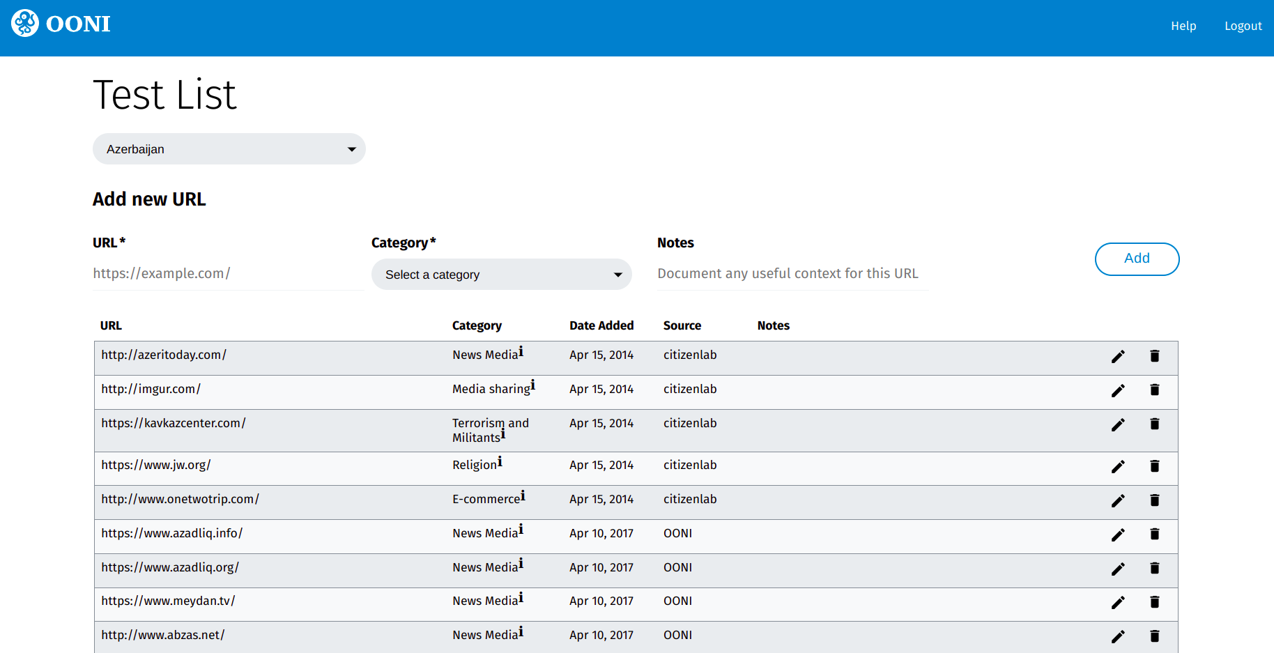 To enable community members to contribute websites for censorship testing (without having to use GitHub), we launched a Test Lists Editor.
