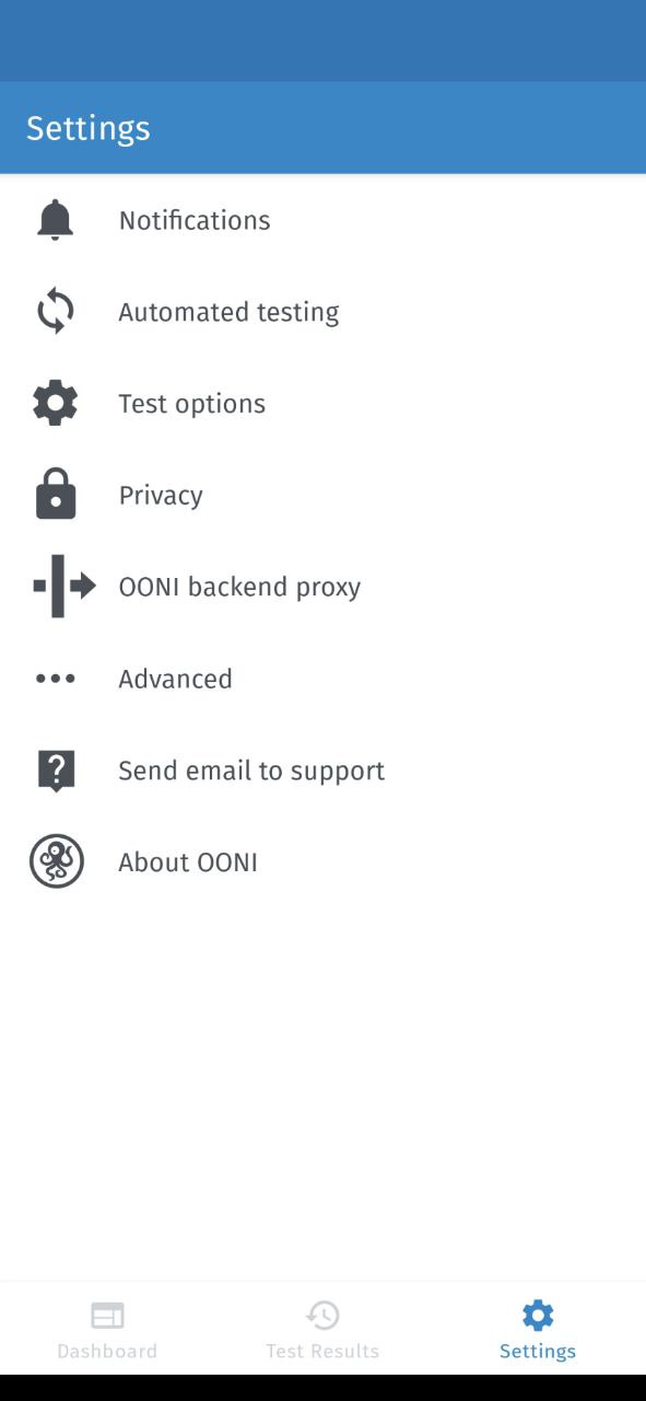 This work resulted in adding an OONI backend proxy section in the settings of the OONI Probe app: