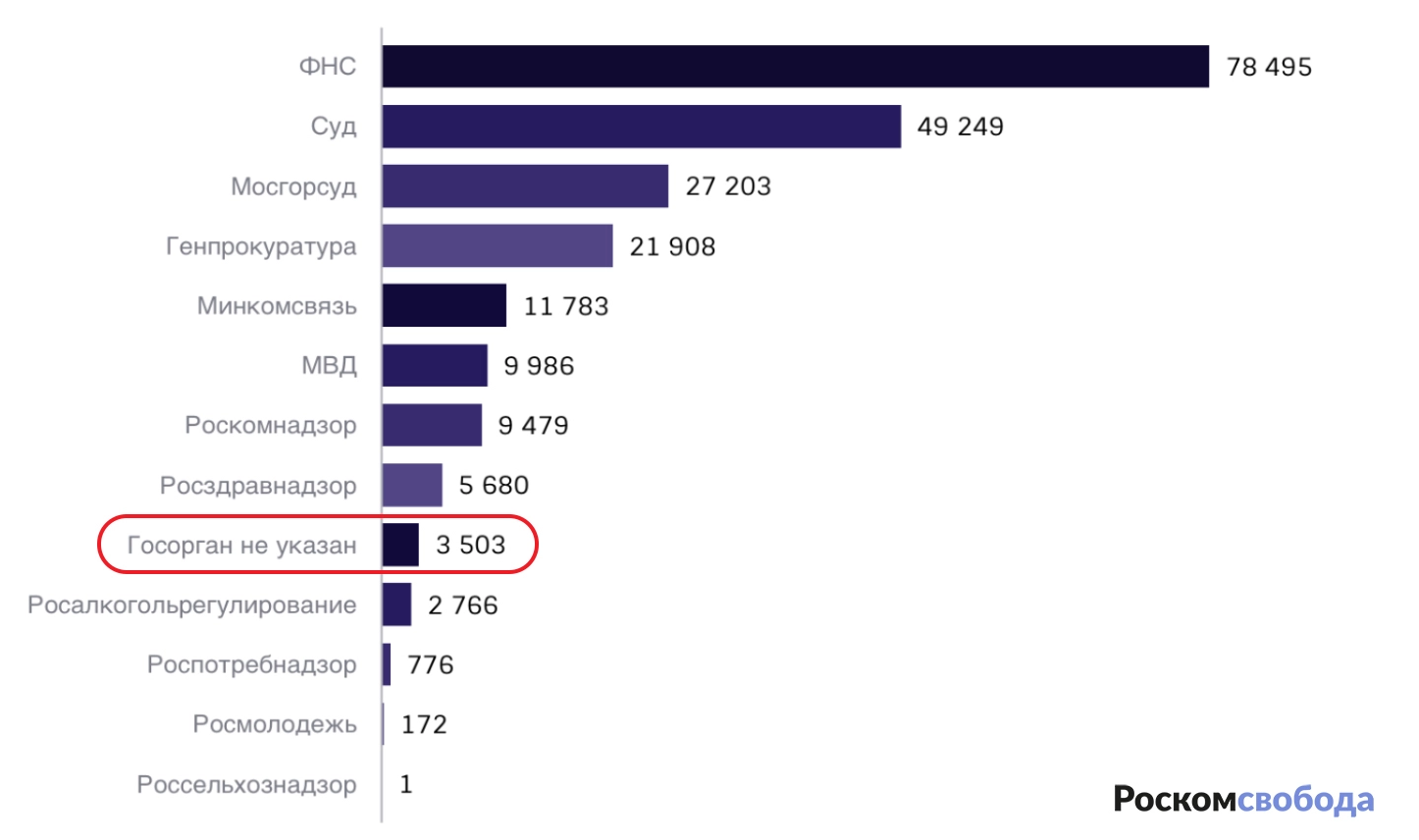 График: Распределение блокировок по ведомствам в 2022 году согласно реестру Роскомсвободы.