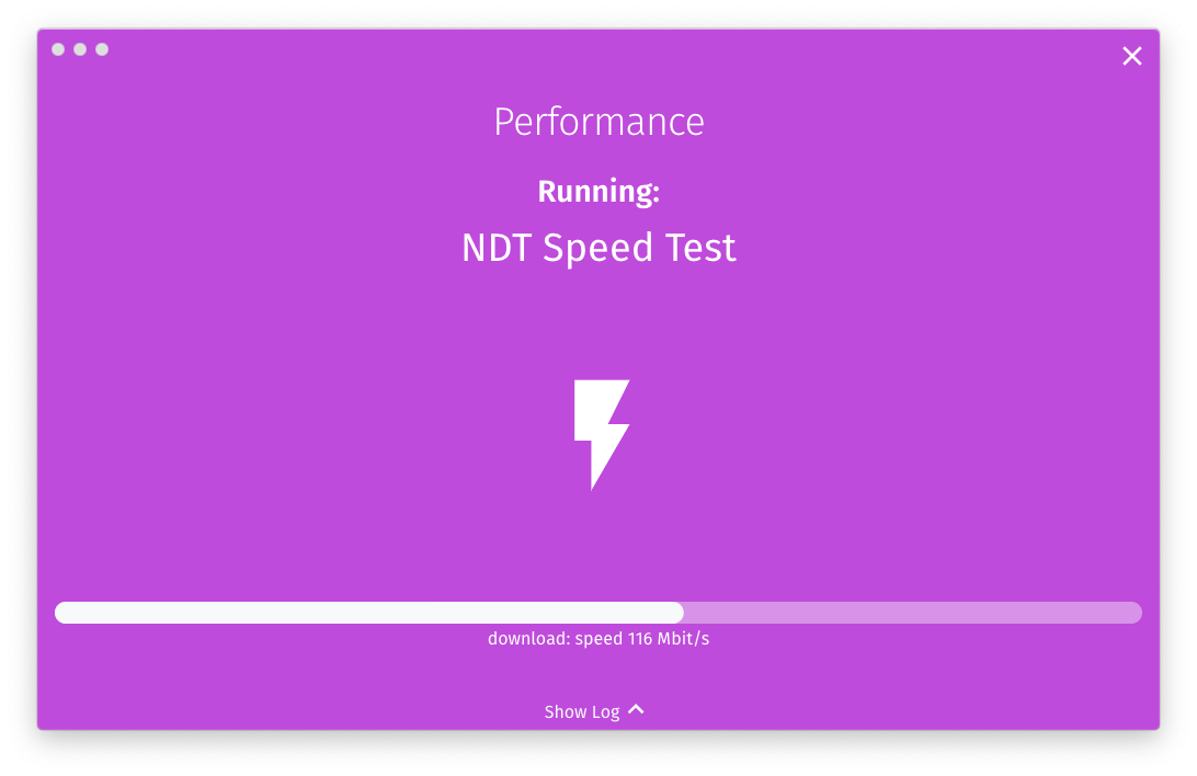 - Performance card. Includes the NDT speed test, the DASH video streaming performance test, and OONI’s middlebox tests (HTTP Header Field Manipulation test and HTTP Invalid Request Line test).