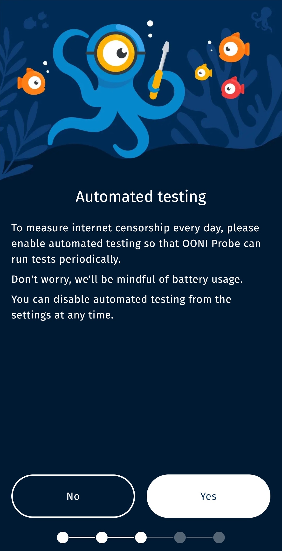 Step 7. If you would like to share crash reports to help us improve OONI Probe, tap Yes.