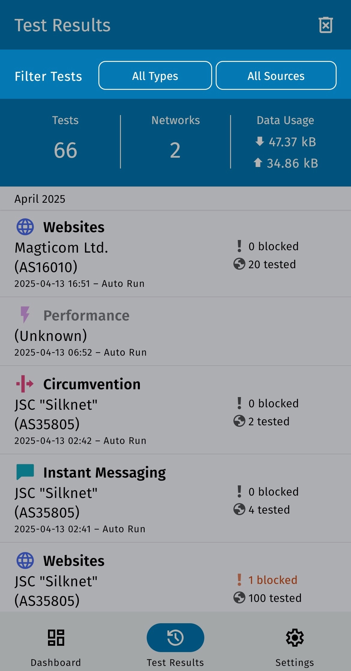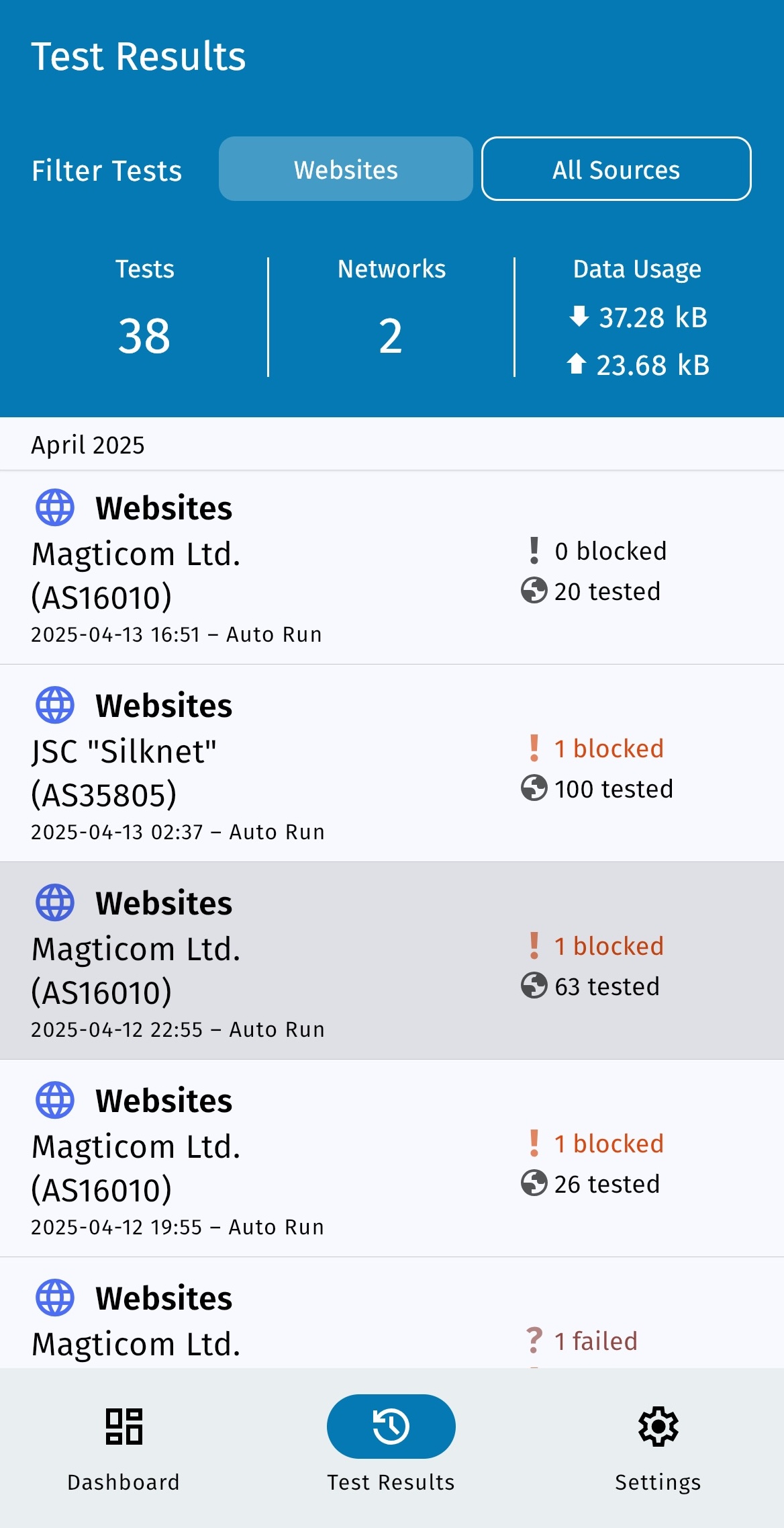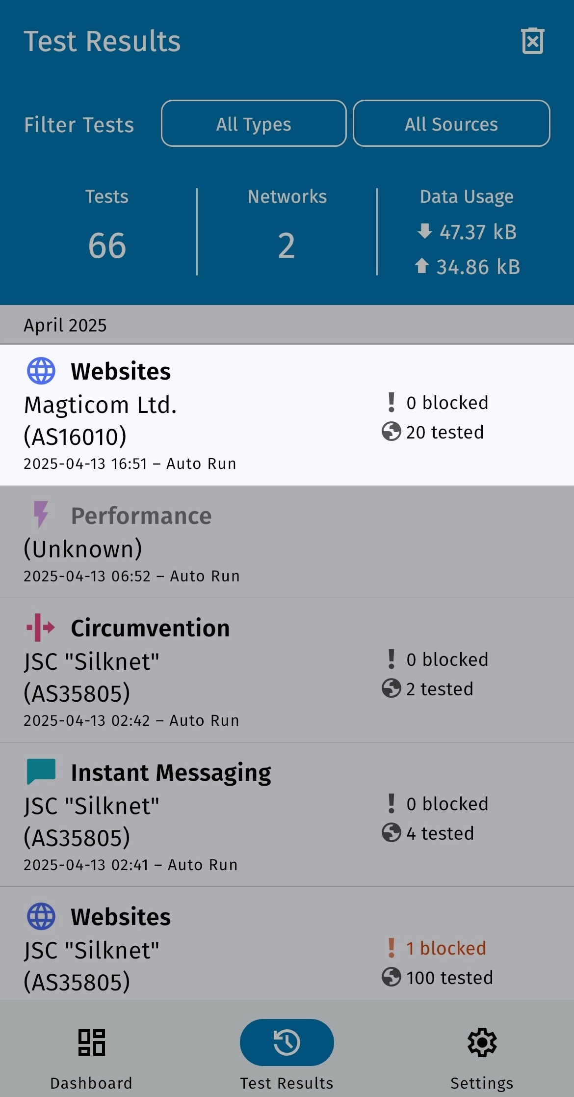 Once the tests have ended, your OONI Probe test results will automatically get published on OONI Explorer and on the OONI API.