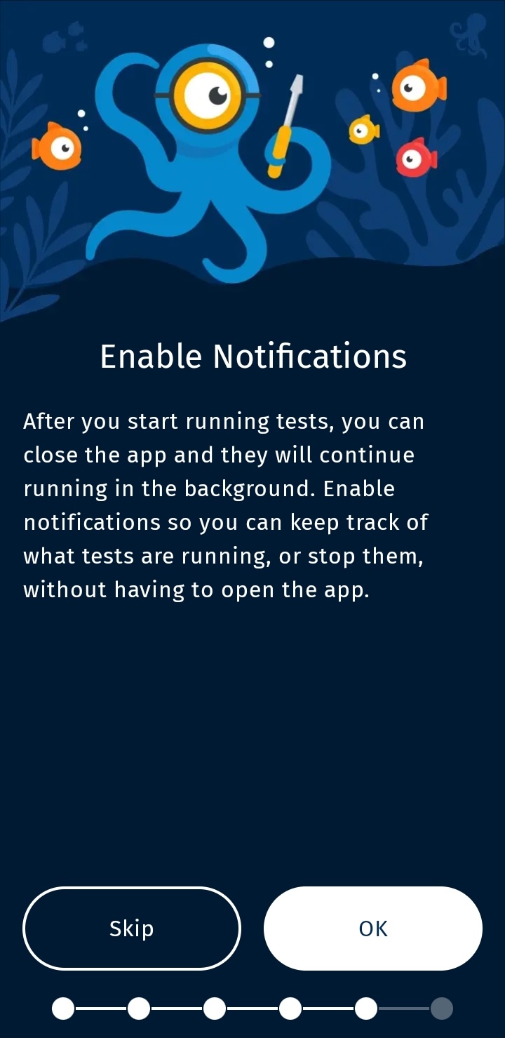 Now that you have installed and opened your OONI Probe mobile app, you will be presented with some basic information about OONI Probe as part of the onboarding process.