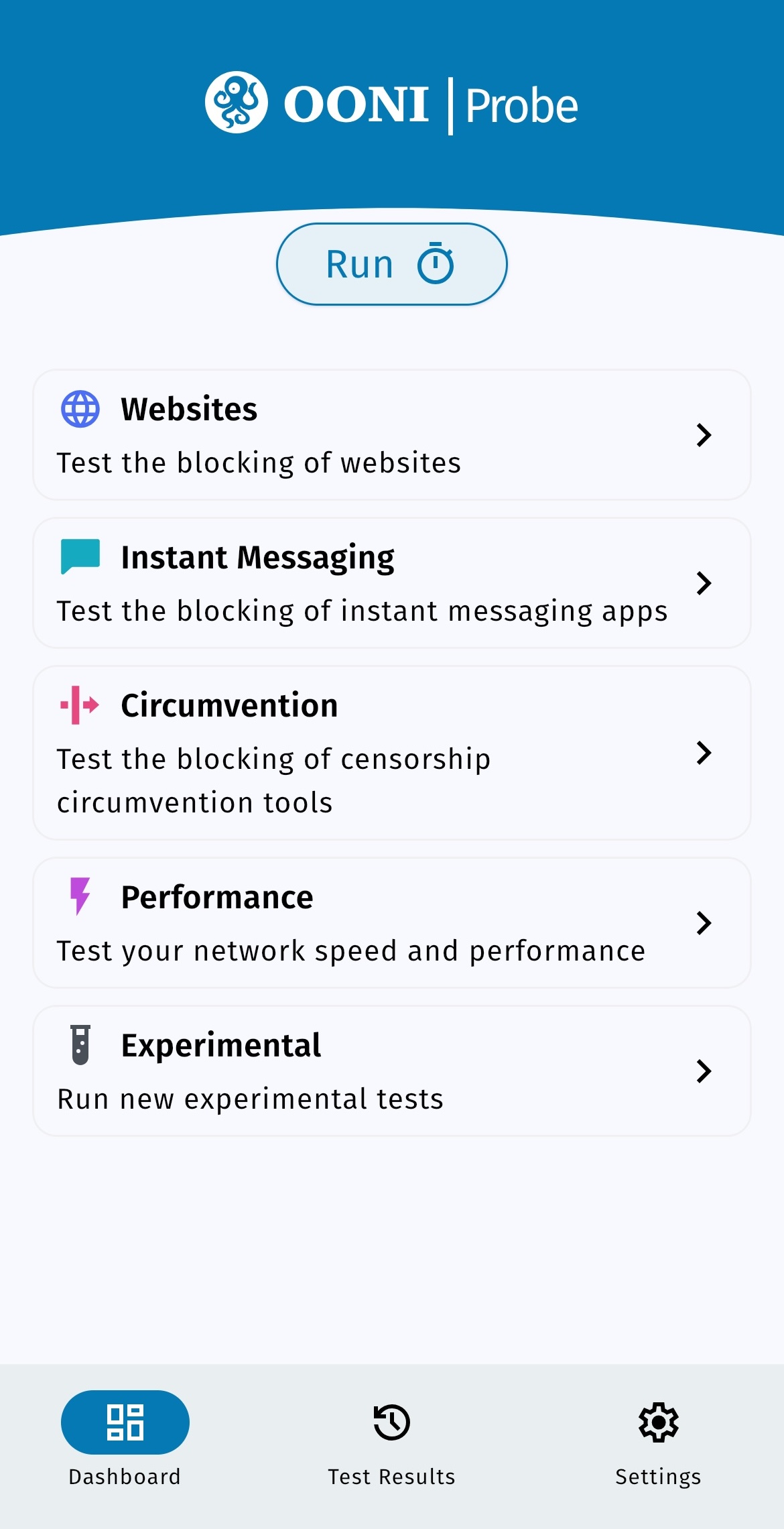 With the OONI Probe app (available for both mobile and desktop platforms), you can run network measurement tests to check the following: