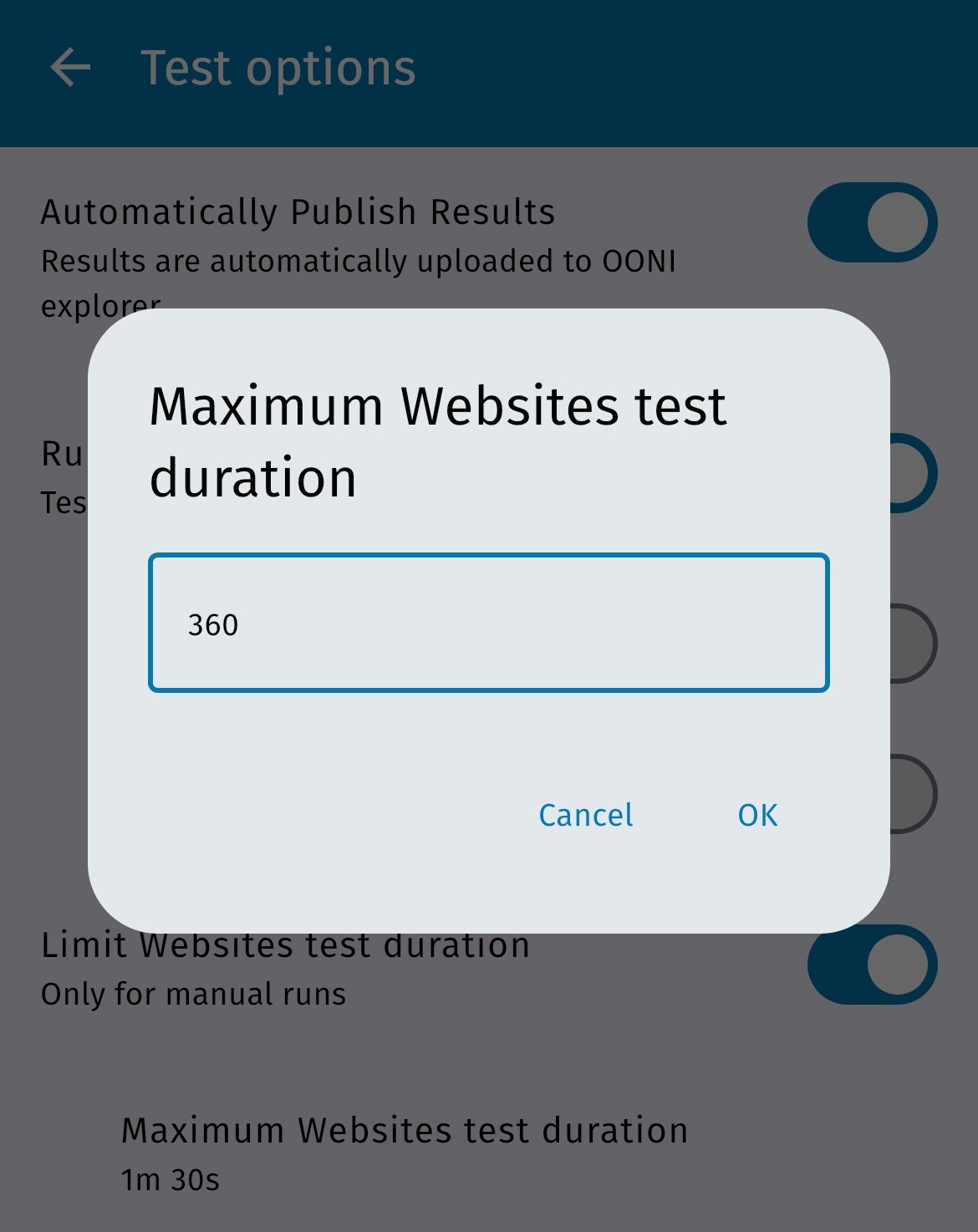 Instead of having to remember to manually run tests, you can enable automated testing in the settings of your OONI Probe app and OONI Probe will run tests automatically for you!