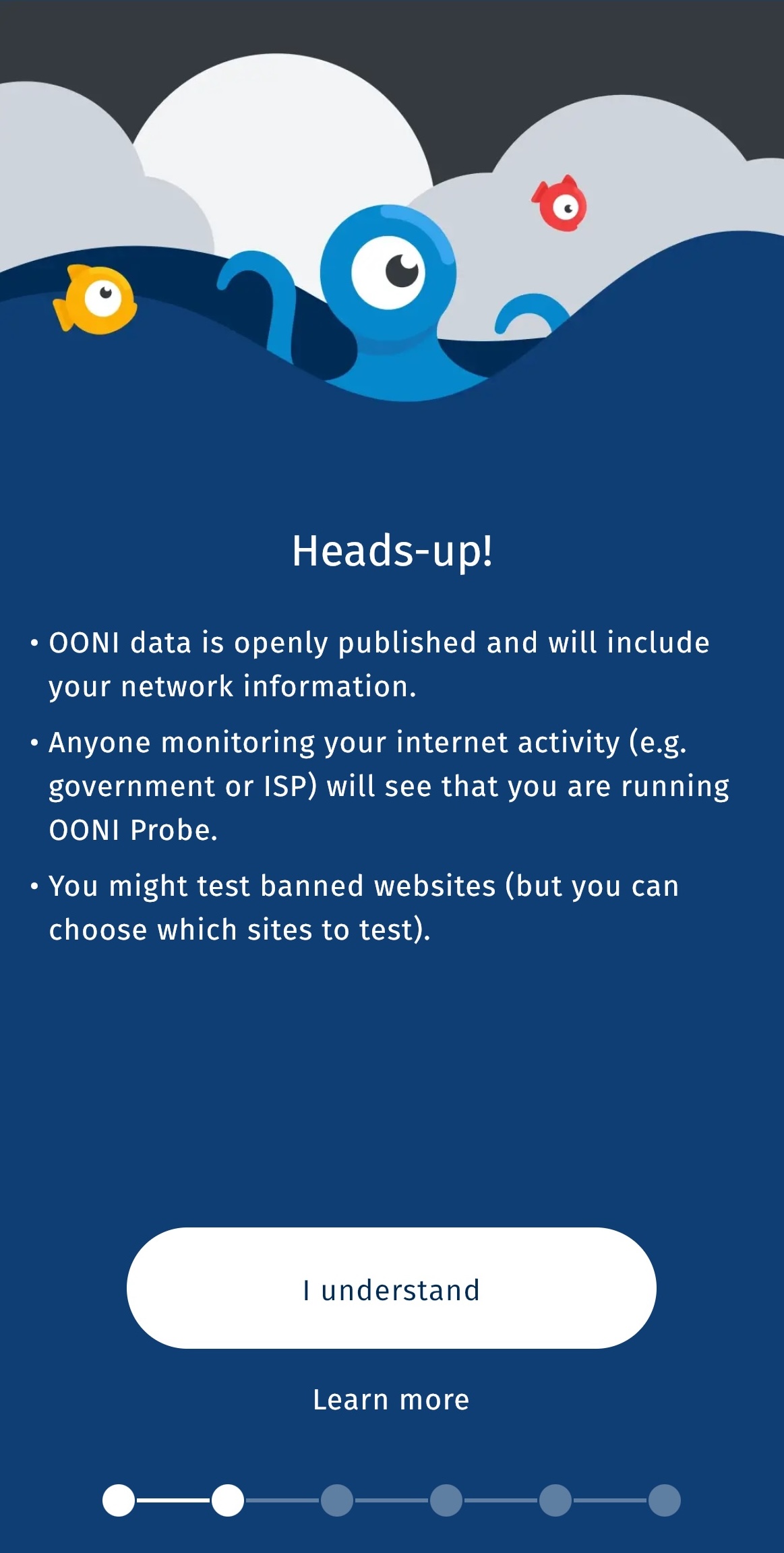 Step 3. Once you have learned about potential risks associated with running OONI Probe, tap I understand.